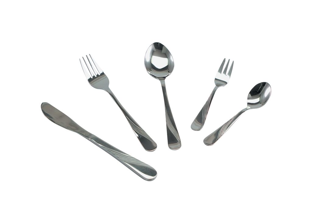 30-teilig, besteht aus: 6x Messer, 6x Löffel, 6x Gabeln, 6x Kuchengabeln, 6x Kaffeelöffel, Edelstahl rostfrei, spülmaschinengeeignet