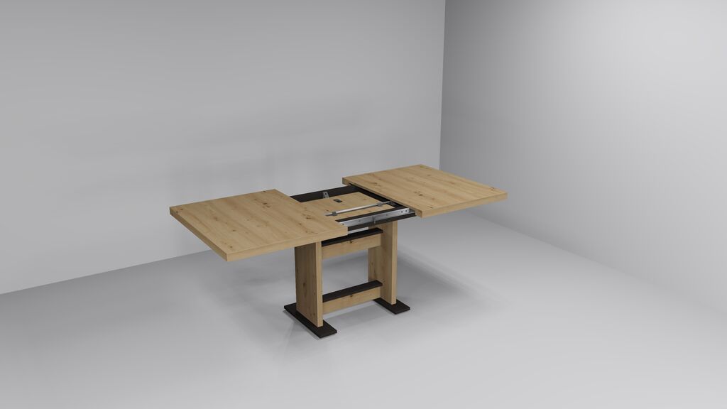 Dekor: Artisan Eiche, Gestell: schwarz, ausziehbar, Maße: 140(195)x90 cm