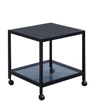 Platte: Metall schwarz/Glas grau, mit schwarzem Metallgestell, auf Rollen, Maße: 50x50x50 cm
