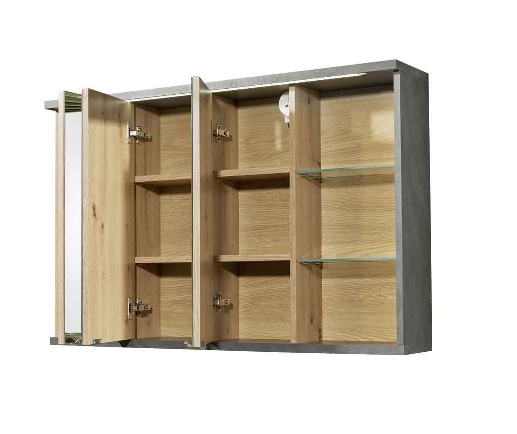 Betonoptik/ Artisan Eiche, 3 Türen, 1 offenes Fach, inkl. LED-Beleuchtung, BxHxT: 110x70x21 cm. 198427