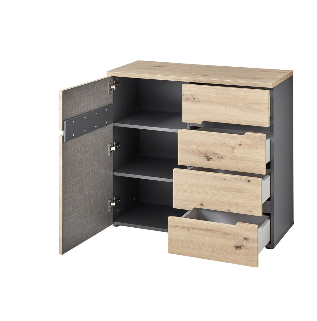 Artisan Eiche/graphit, 1 Tür, 4 Schubkästen, Softclose, BxHxT: 90x82x38 cm, in verschiedenen Größen erhältlich