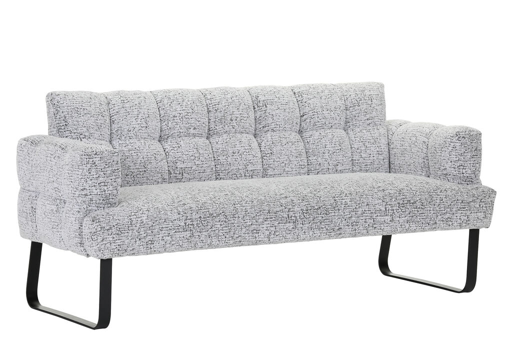Stoff, weiß-schwarz meliert, Rücken echt, Metallgestell: schwarz, BxHxT: 225x91x77 cm