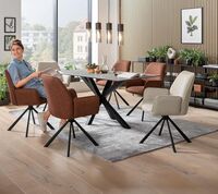 bestehend aus: Tisch, Glas/Keramik grau, Metallgestell: schwarz, 200x100 cm, in verschiedenen Größen erhältlich und Stuhl, Stoff: terracotta , beige, Metallgestell: schwarz, um 360° drehbar, mit Armlehnen, in verschiedenen Farben erhältlich