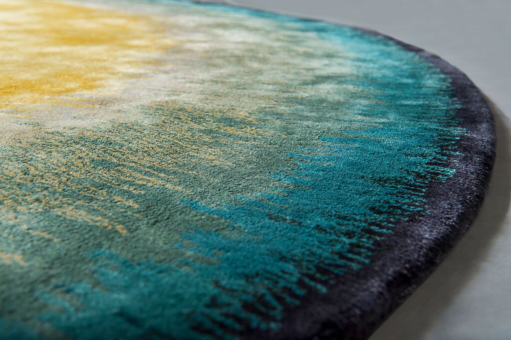 Handtuft, blau/gelb, rund, Durchmesser: 240 cm, in verschiedenen Farben und Größen erhältlich