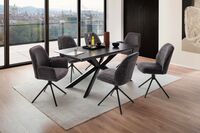 bestehend aus: Tisch, Keramik anthrazit marmoriert, ausziehbar, 160(200)x90 cm, Metallgestell: schwarz und Stühlen, Stoff: anthrazit, Metallgestell: schwarz, mit und ohne Armlehnen, in verschiedenen Farben erhältlich