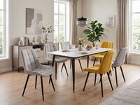 bestehend aus: Tisch, Keramik weiß, Metallgestell: schwarz, 160x90 cm, Stuhl, Stoff: grau, Metallgestell: schwarz, in verschiedenen Farben erhältlich