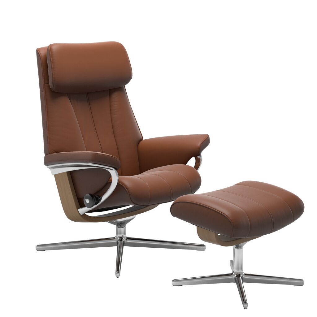 Leder, cognacfarben, Holz: Eiche, Gestell: Chrom, in verschiedenen Farben und Ausführungen erhältlich