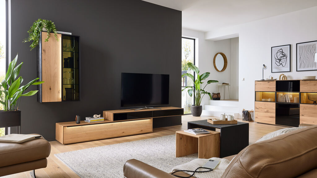€ 1.705,00*€ 889,00Artisan Eiche/schwarz, Griffe: schwarz, 4-teilig, BxHxT: 344,2x208x41,5 cm. Beleuchtung gegen Mehrpreis€ 1.705,00*€ 889,00
