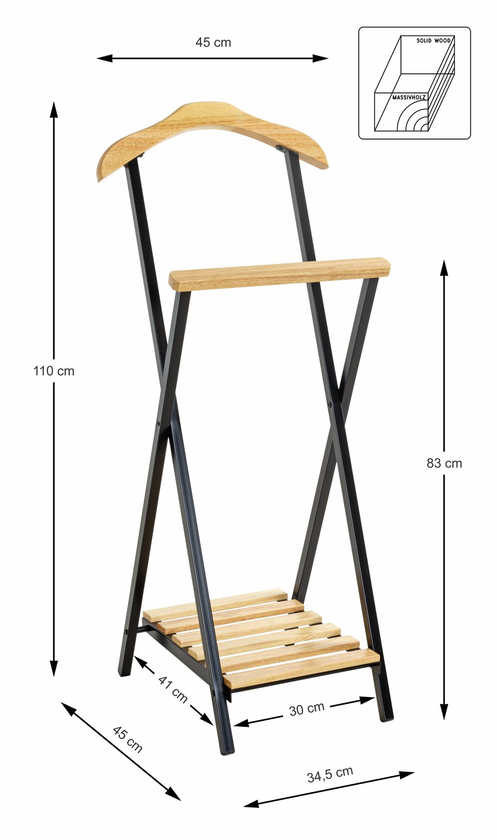 Massivholz/ Metall, schwarz, BxHxT: 45x110x45 cm