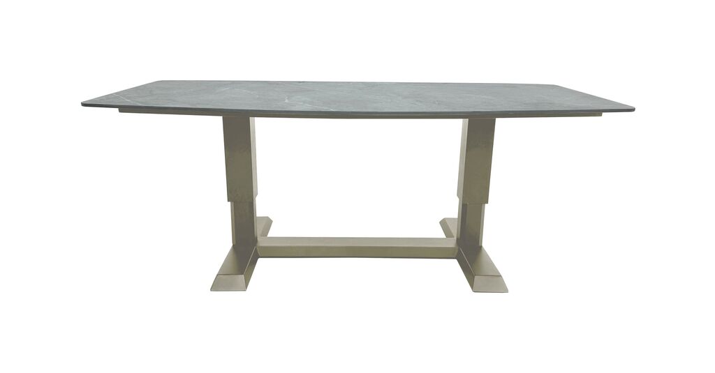 Alugestell, taupe, Tischplatte: Sintered Stone, beige, höhenverstellbar, BxTxH: 180x90x51/68,5 cm