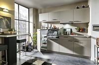 Cremegrau matt, 240 cm, inkl. aller angeführten Edelstahl Einbaugeräte, in verschiedenen Zusammenstellungen und Farbkombinationen erhältlich. Backofen sowie Spüle gegen Mehrpreis, 204908