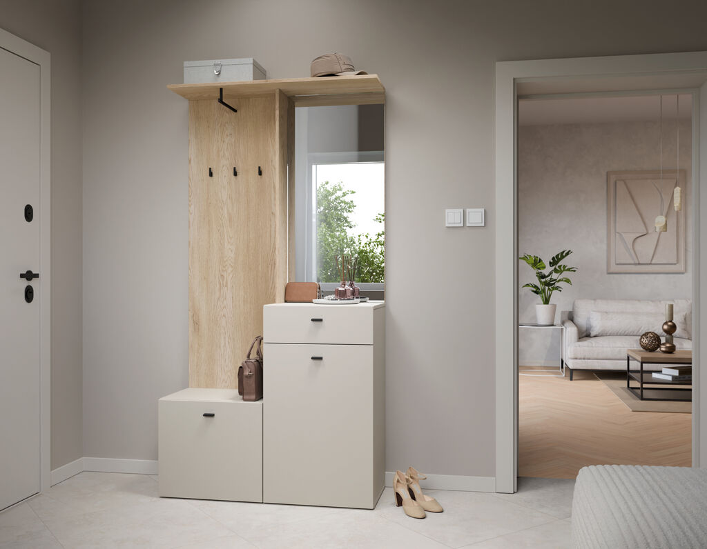 Dekor: Eiche cremona/ beige, bestehend aus: Schrank, Paneel und Spiegel, BxHxT: 100x192,1x36,6 cm