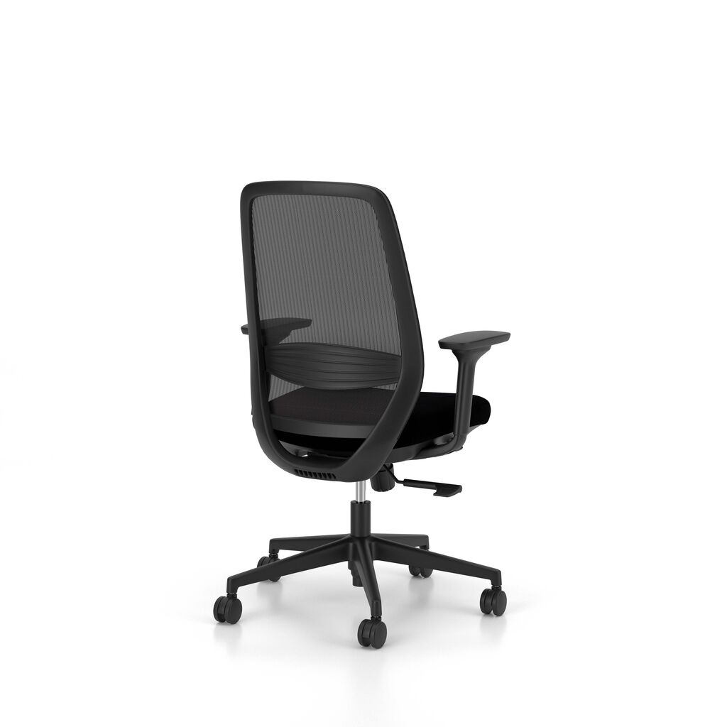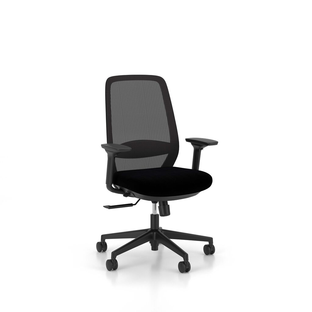 Stoff, schwarz, Netzrücken, schwarz, mit höhenverstellbarer Lumbalstütze, Synchronmechanik und Sitztiefenverstellung, Rückenlehne nach Gewicht einstellbar, mit Armlehnen, Garantie: 3 Jahre