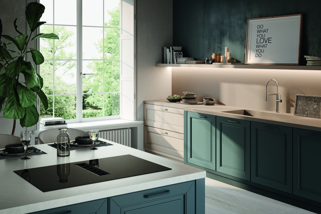 Breite: 83 cm, 4 Kochzonen, 2x Bridge, Slider, 9 Stufen und booster, Abluftbetrieb, inkl. Abzugsrohr, Energieeffizienzklasse: A+