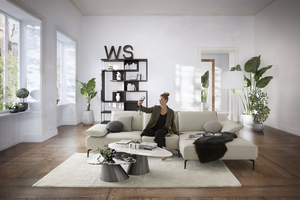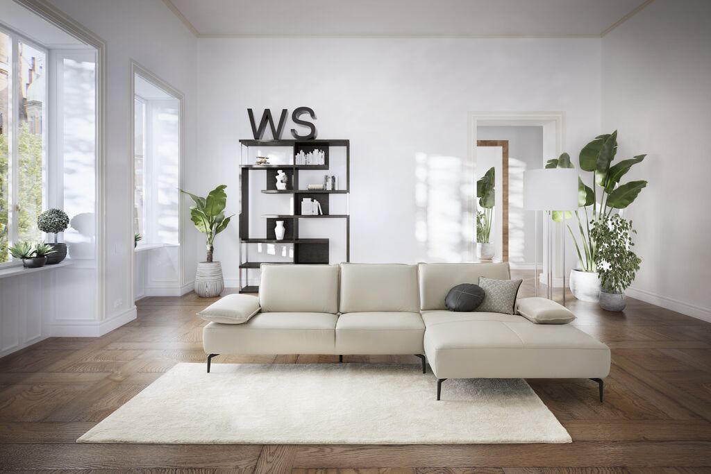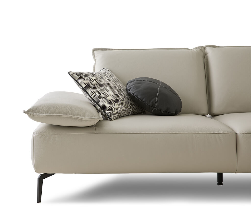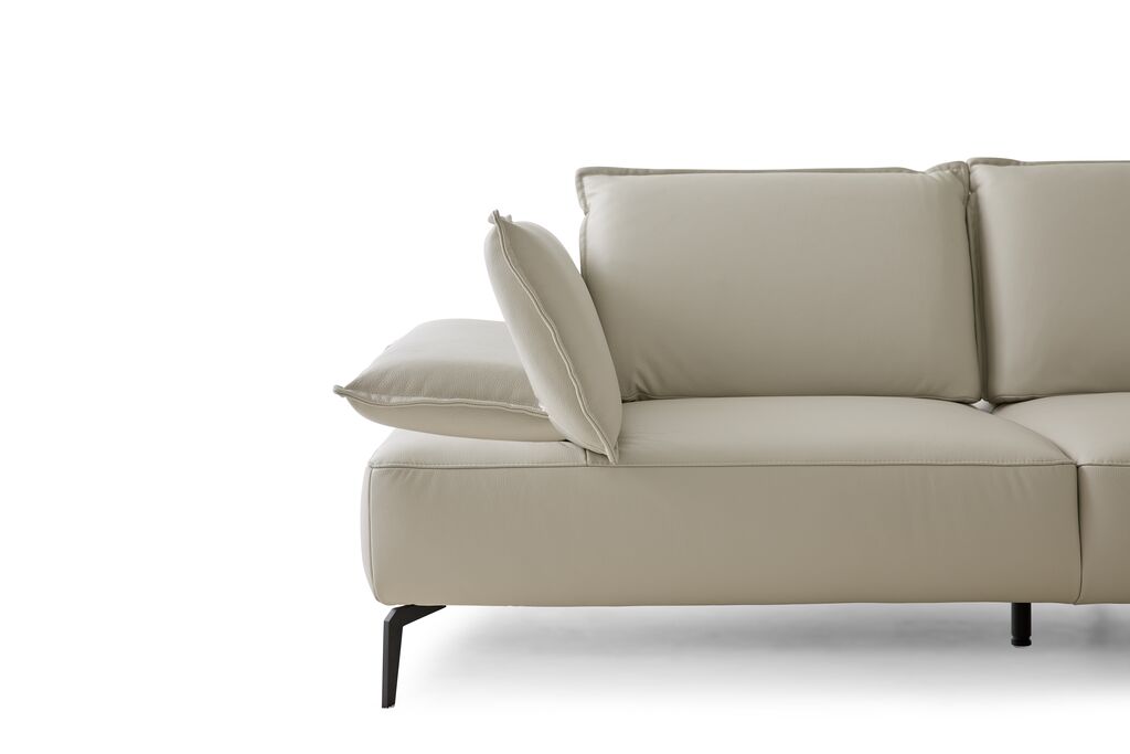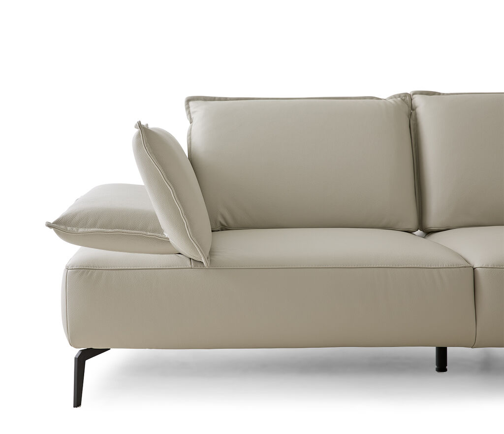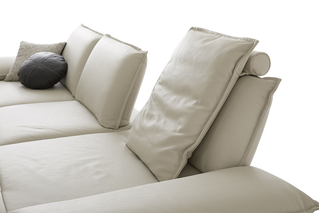 Leder, greige, inkl. Sitztiefenverstellung, Maße: 320x183 cm, in verschiedenen Zusammenstellungen und Farbkombinationen erhältlich. Seitenteilverstellung und Kissen gegen Mehrpreis