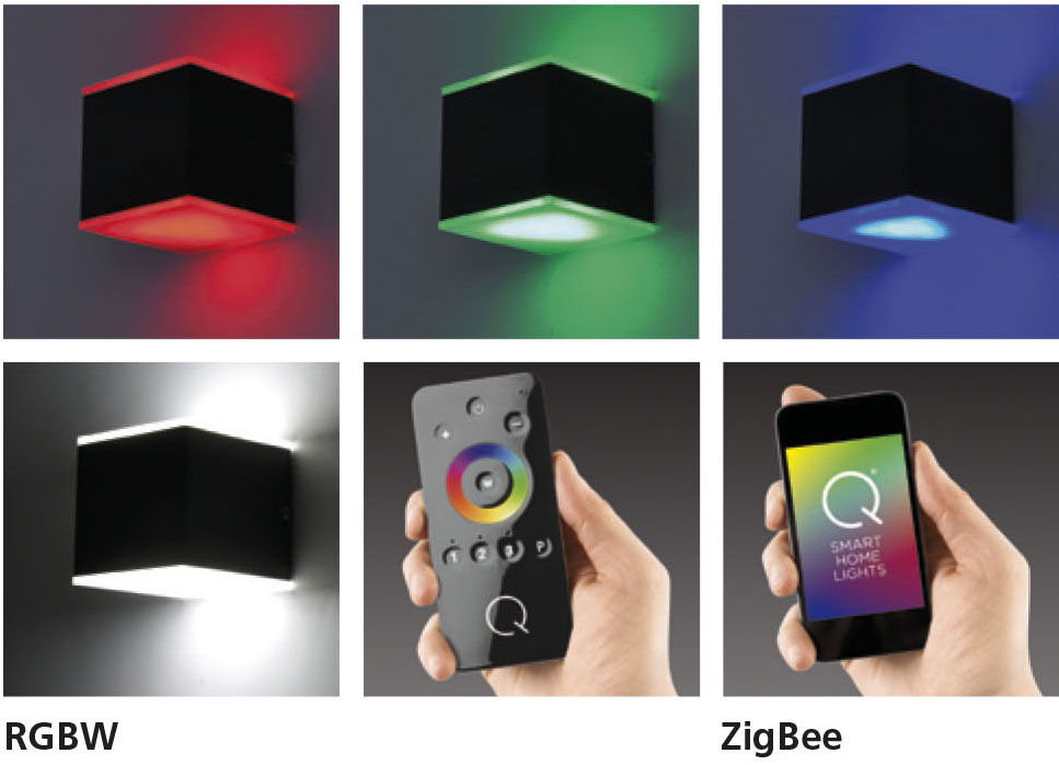 Anthrazit, 11x11 cm, 2x4,8 W, 960lm, 3000 K, IP44, mit Fernedienung, Zigbee, inkl. Leuchtmittel, Energieeffizienzklasse A