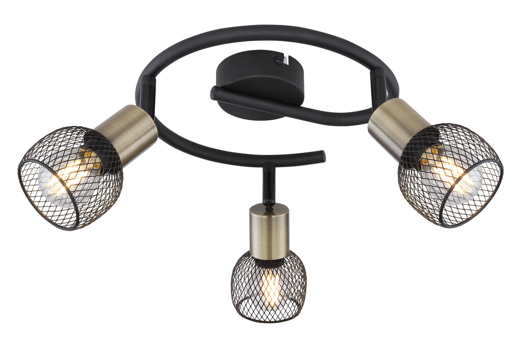 Metall, schwarz, Altmessing, mit Schalter, ø: 23 cm, Höhe: 14 cm, exkl. 3xE14/40 W, Energieeffizienzklasse A++-E
