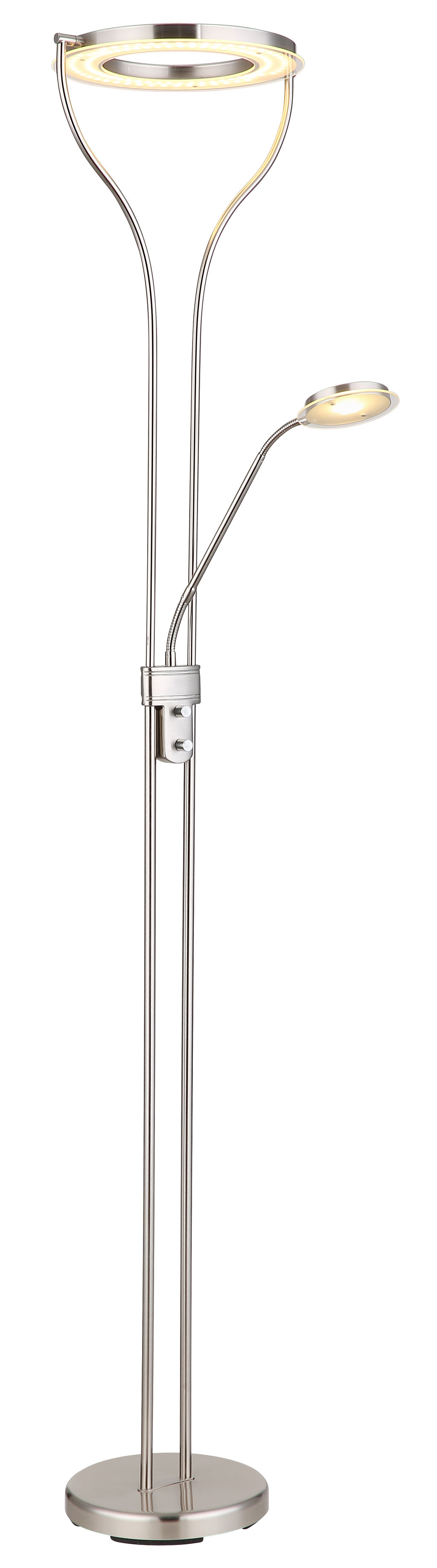 Metall verchromt, Nickel, Acryl satiniert, LxBxH: 35x30x194 cm, 1x20 W, 2500 lm, 1x4 W, 380 lm, 3000 K, dimmbar, Energieeffizienzklasse A+