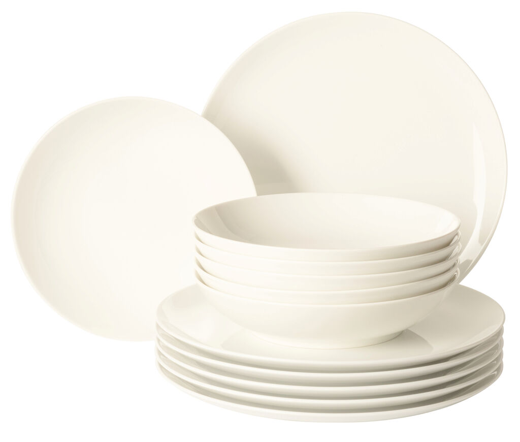 12-teilig, besteht aus: 6x Speiseteller, 6x Suppenteller, Hartporzellan, mikrowellen- & spülmaschinengeeignet